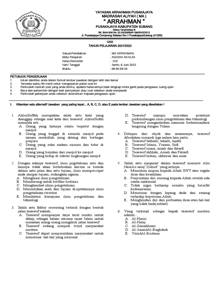 Berikut adalah contoh-contoh soal Aqidah kelas 11 Semester 2 yang mencerminkan ruang lingkup materi di atas, disajikan dalam berbagai bentuk untuk menguji pemahaman konseptual, analitis, dan aplikatif.